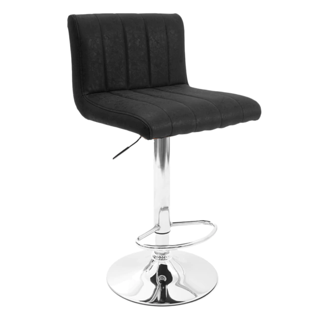 Banqueta regulable con respaldo, tapizada con ecocuero "vintage" negro ó marrón, estructura y base negro mate.