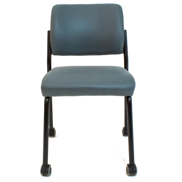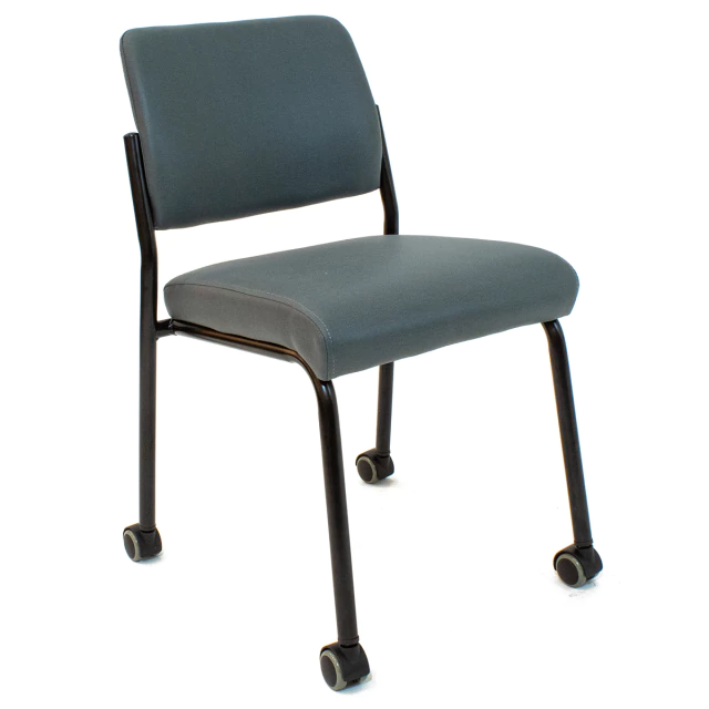 Silla oficina o sala de reunión, tapizada con tela, estructura negro mate y ruedas.