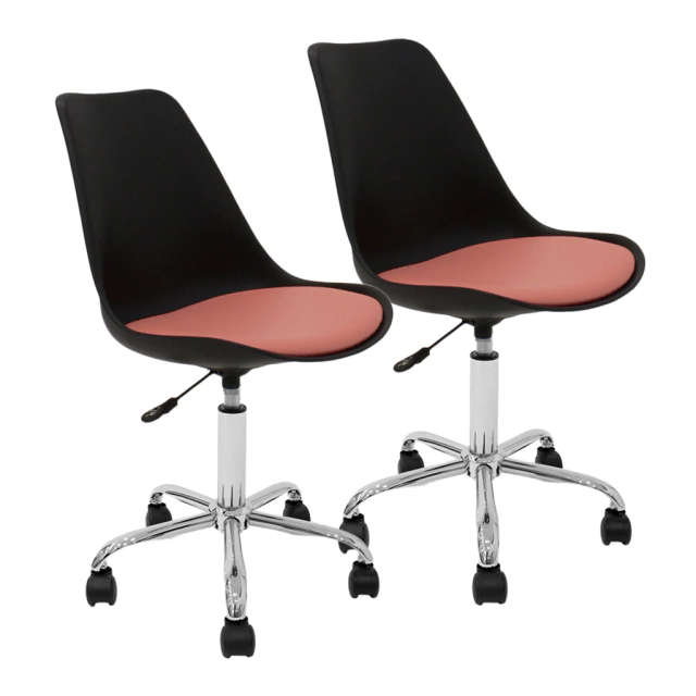 Sillas regulable con ruedas de ABS rígido negro, amohadon tapizado con ecocuero en varios colores y estructura cromada.